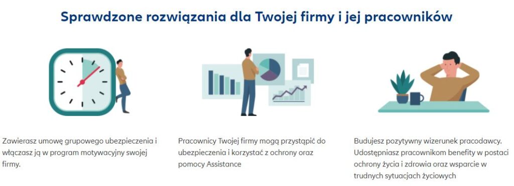 - Dodatkowe korzyści: Możliwość rozszerzenia ubezpieczenia o dodatkowe umowy, takie jak ubezpieczenie na wypadek poważnego zachorowania, OC w życiu prywatnym oraz świadczenia assistance – pomoc w chorobie.